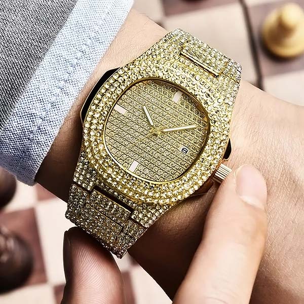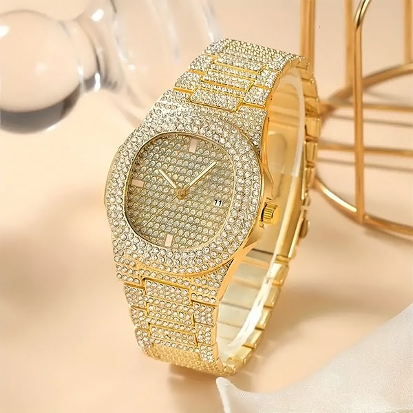 Hiljade svetlucavih kristala pretvaraju ovaj sat u fascinaciju. To nije samo sat – to je hrabar izraz luksuza i elegancije.